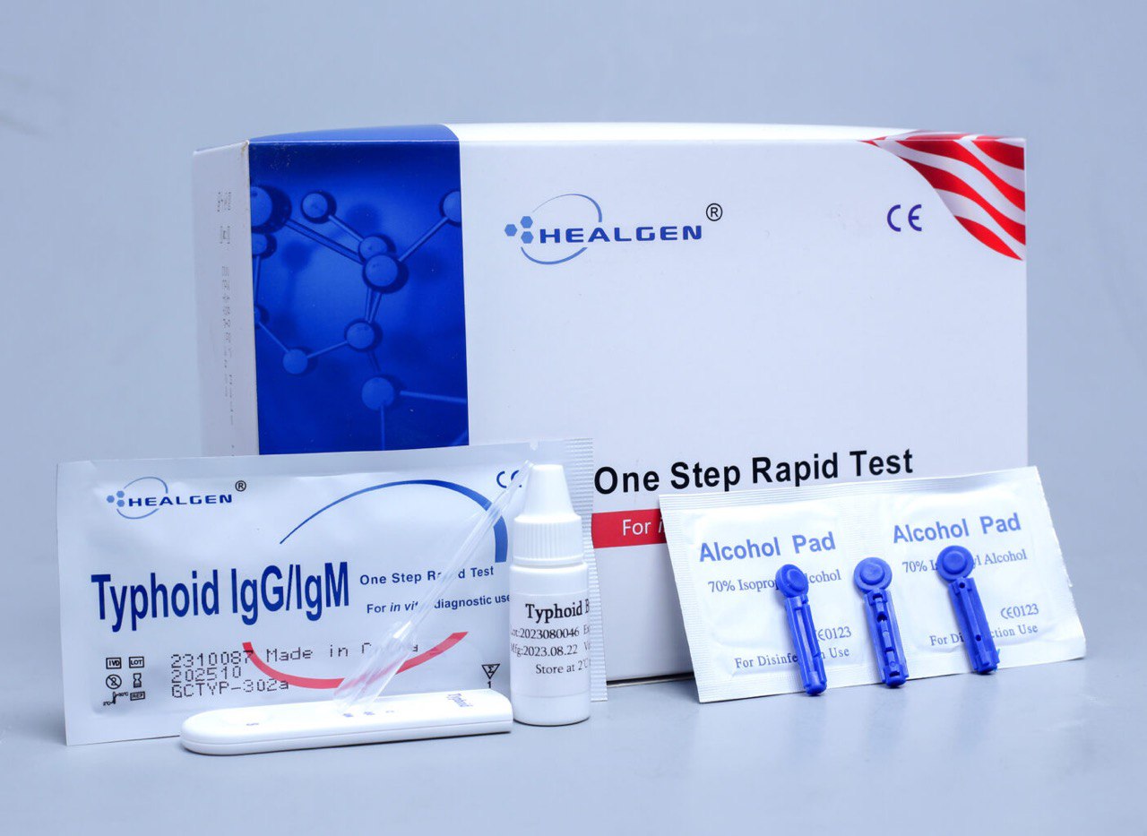 A qualitative in-vitro diagnostic test for the rapid detection of antibodies to Salmonella typhi in human whole blood, serum, or plasma. Intended to aid in the screening and diagnosis of typhoid fever.